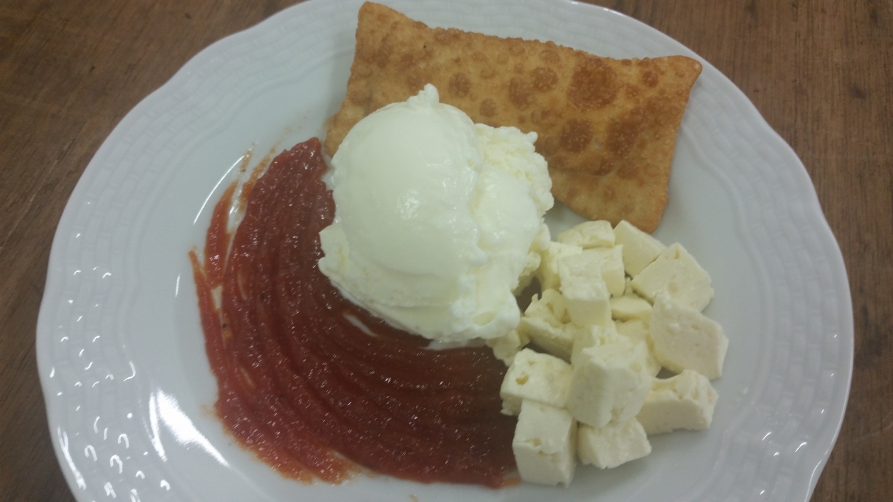 Pêra Grelhada com Sorvete de Framboesa